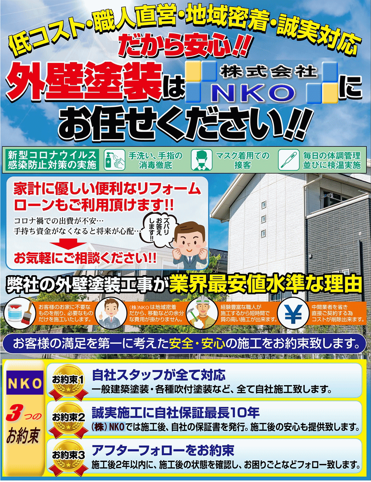 弊社は自社にて施工を行いますので、中間マージン等は不要ですので、余計な費用は発生致しません。